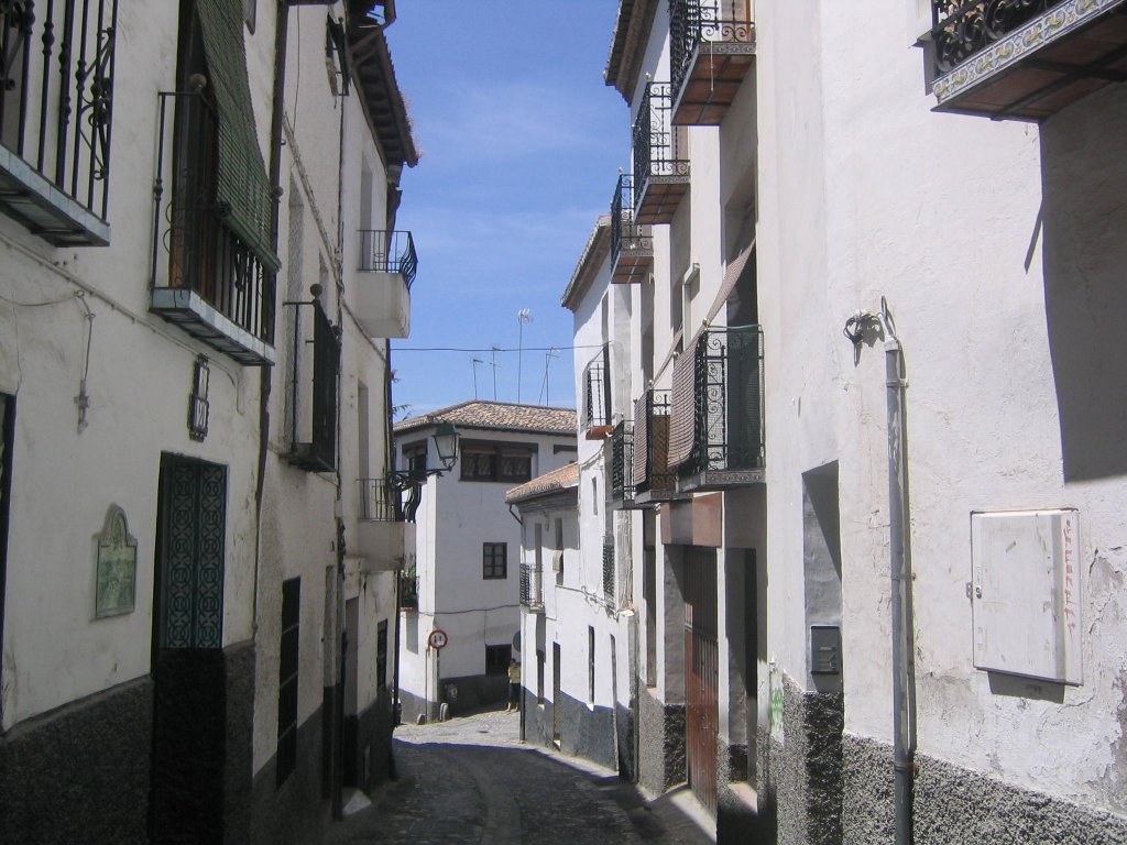 ここはアルバイシンという場所で、写真にあるように白壁が立ち並ぶ場所です。リフォームされている家もありますが、外見や景観を損なわないように、政府に管理されています。古い歴史を持つ、貴重な世界遺産です。私の家の壁のある一面は、昔グラナダの町を囲っていた壁の一部がそのまま使われているそうです。ただ、白色のペンキで塗られていて、町の壁だとはわからないようになっていますが、デコボコしているので、その壁だということはわかります。この上の写真は、私の家の前の道です。