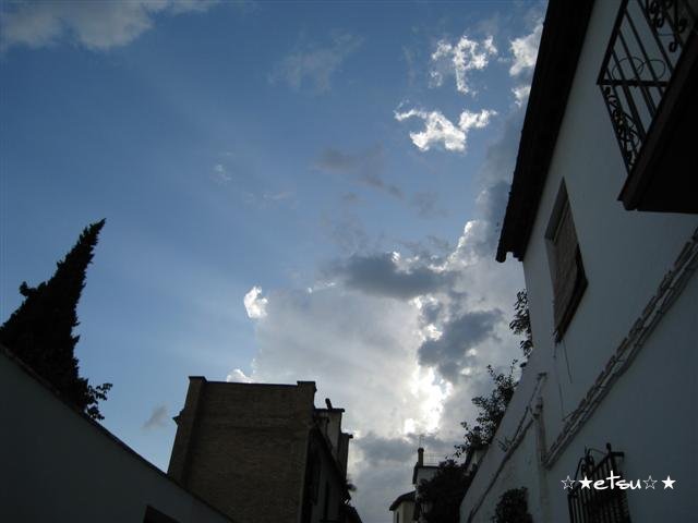 急いでアルバイシンの坂を下り始めましたが、すぐに激しい雨となり、びしょ濡れに;