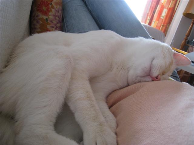 スヤスヤ気持ちよさそうに寝ています。最近ちょっと膨らんできたお腹がちょうどいい具合にクッション代わりになってるのかな。嬉しいような、悲しいような…。って、減量しないと★★★でもキティのこのかわいい寝顔を見る為には、お腹のクッションも必要なのかも。と言って食べる理由を作る私。だって、食欲旺盛な年頃なんですもの。と、無理やり理由をつける私。。。いつまで経っても減量は無理かも;;
