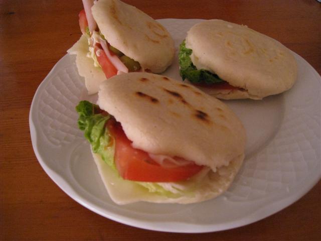 そしてこれは今日のメニュー。ベネズエラ人の友達に教えてもらった 料理、とうもろこしの粉で作ったパンです。アレパといいます。ベネズエラでは、主食のようなものだと言っていました。