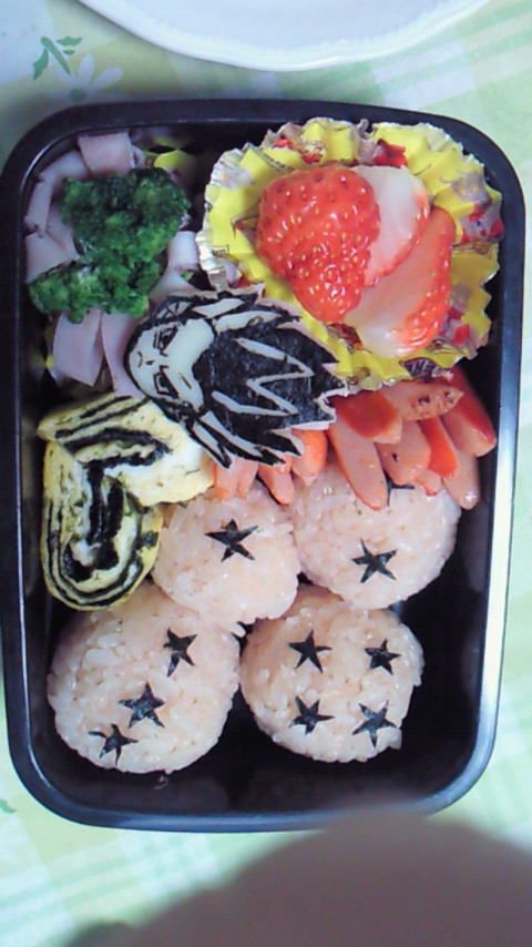 今回は、チーズの上に形作った海苔をのせています。こういうのに挑戦したのはこれが初めてだったようですが、もう要領は得たから、また別のキャラ弁を作ると言ってました。その器用さが欲しい…。甥っ子も大喜びだったようです^^はしゃいでる姿が目に浮かぶ☆☆でも、これを作ってもらったら大人の私でも大喜び&大はしゃぎになること間違いなし!です☆もったいなくて食べれないかも。