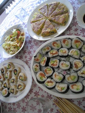 私は、義母は和食が好きなので、巻き寿司を作っていきました。お寿司を食べたことがない人もいて、最初のお寿司が私が作ったお寿司ということで、責任重大でした。でも、おいしいと言ってくれたので嬉しかったです。ま、他のお寿司を食べたことがないので、比べるものがなかったってだけなんですが;