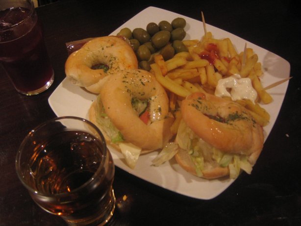 飲み物を頼むと、それについて出てくるのですが、ここグラナダは、さすが学生の街だけあって、タパスの量も多いと有名です。今回スペインに来てから初めて、タパスを食べに行きました。バルによっていろいろ差はありますが、このバルは量の面でも、味の面でも満足するものでした。飲み物を一杯300円ほどで注文して、これだけのものが無料でついてくるなんて^^写真は3人分ですが(私と妹と友達の分)2杯頼めばそこそこお腹が満たされる量でした。これはかなりお得!いろんなバルを試してみたいな☆