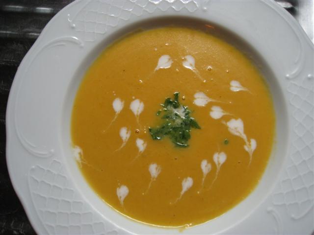 ⑧後は皿などに移し、生クリームを点々と落とし、先の尖った物で、円の真ん中を切るようにすると、ハート型になります。パセリを散らして、完成です☆