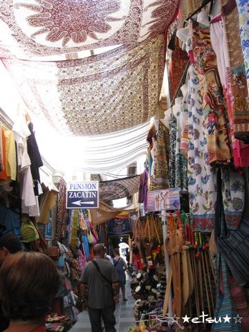 テテリアがある通りや、アルハンブラ宮殿に続く坂道にも、同じような店があります。この夏は、アラブ風のパンツ(ズボン)やスカートを買いました。ダボッとしていて、裾が絞ってあるパンツです。履き心地はいいです。こちらではみんなよく履いています。スカートはロングスカート。また、ズボンのようなスカートもあって、それも気に入って履いています。また写真アップします☆