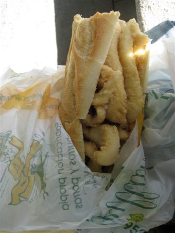 その美術館のすぐ近くにあったレストランで、イカのサンドイッチが有名、と自称^^していたので、選ぶ時間もなかったし、それを食べようと中に入りました。出来