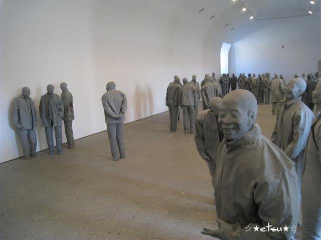 印象的と言えば、ニューアートのセクションで見たものですが、こんなのもありました。これは、同じ顔をして笑っている人たちが何十人もいる部屋です。見ているとこちらまで嬉しくなってくるような、クスっと笑わざるを得ない、楽しい部屋でした。実際に、そこに入った人はみんな笑顔でした^^笑顔は笑顔を呼ぶ。まさにそんな感じでした。
