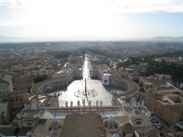 朝6時半ごろに起きて、7時すぎ頃にバチカン市国へ到着しました。まず、サン・ピエトロ大聖堂へ行き、エレベーターと階段を使い、上まで登りました。なんと、一番乗りでした。途中までエレベーターで上がれますが(料金7ユーロ。階段のみだと5ユーロです)、そこから階段で、正確には覚えていませんが、3百段ちょっと登ります。体を斜めにして登らないといけな部分もあったりして、なかなか登りづらいですが、登った後は涼しい風が迎えてくれるので、気持ちがいいです。