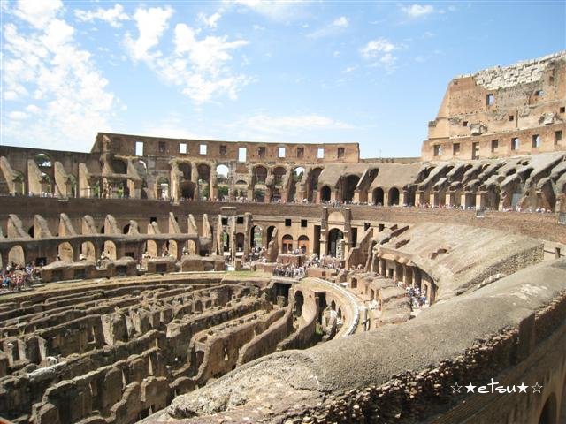 ここでは、全てを見る時間はなかったので、ラファエロの絵画やシスティーナ礼拝堂などを早足で見て、次の場所へと急ぎました。友達は、疲れていたようなので、ホテルへ帰り、私は一人で、昨日見れなかったパンテオンとコロッセオを見に行きました。また昨晩夕食をとる予定だった、日本人が経営されているイタリアンレストランへ行き、トマトとルッコラとモッツァレラチーズのサラダを食べました。これが本当においしかった!!今まで食べたモッツァレラチーズの中で一番濃厚で、一口一口大切に味わって食べました。