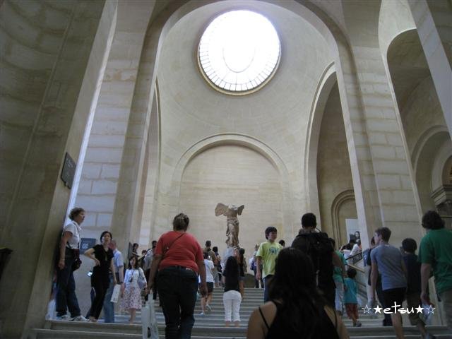 そこから、ルーブル美術館へ行き、モナリザやミロのヴィーナス、サモトラケのニケなどを見て、ノートルダム大聖堂へと向かいました。ノートルダム大聖堂は無料だったので、たくさんの人が並んでいましたが、チケットのチェックがないので、比較的スムーズに中へ入ることができました。一つ気になったことは、というと、大聖堂の中では静粛に、という表示があるにも関わらず、その入り口で、私の後ろに並んでいたスペイン人のおばさん達が大きな声で話していたことです。係員の人が二人して、「シーーー」と言っても、耳には入ってなかったようで、私も振り返って、「シーーー」と言ってみましたが、効果はなかったようです^^;飛行機の中でもそうですが、スペイン人がいるのといないのとでは、騒音レベルが大きく変わります;
