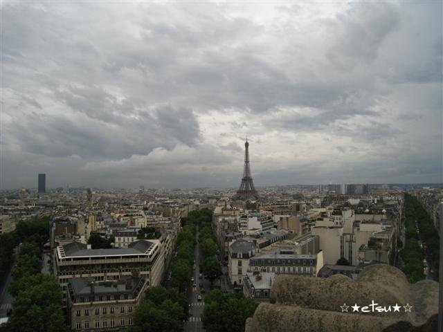 そしてあまり時間がなかった為、凱旋門見学を10分ほどで済ませてしまった私;凱旋門の上に続く階段を、途中までは全速力で駆け上がり、パリの街と、エッフェル塔を見て、それから、またもや全速力で下まで走って降りました。気づいたら雨が止んでいたので、雨に濡れることなく見学ができました。よかったです。