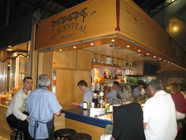 タクシーを降り、地下鉄に乗り、次の目的地を目指しました。どきん☆chanの友達のバルセロナ在住の方が薦めて下さった、カタルーニャ広場にある市場です。中には、果物、野菜、肉、魚など、新鮮なものが所狭しと並べられていました。そして、一通り店を見た後、お目当てのバー&レストランへと向かいました。"BARCENTRAL"というところで、市場の一角にあります。バルセロナのサッカー選手も来店していたようです。写真が飾ってありました。魚介類がおいしそうだったので、魚介パエリアと、イカ焼き(もっと素敵な名前があると思いますが、日本語に直した時にこれしか思い浮かばなかった;;)を頼みました。パエリ