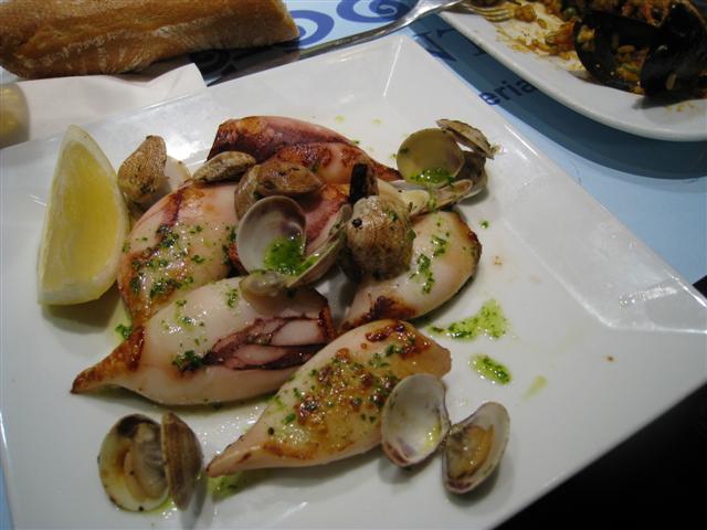 アもおいしかったですが、このイカ焼き!!絶品でした。何皿でも食べれる、という感じでした。どきん☆chanと、「デザート食べる?」「いや、このイカのおいしさを口の中にそのまま残しておきたいから、食べない」というやり取りをしながら、一口ずつ大切に大切に食べました。おいしかった^^またバルセロナに行くことがあったら、そこのイカを食べに行きたいと思っています!他のメニューも試してみたいな♪