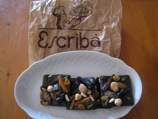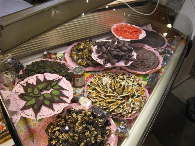 私もお土産にチョコレートを買おうと思い、一キロ70ユーロ以上もするチョコを調子に乗って8枚ほど頼むと、予算外の値段になったので、結局5枚にしました。3枚違うだけでも全然違った;どきん☆chanにもおすそ分けをしました。味はどうだったかな?実は私はまだ食べていません。明日食べよっと。ちなみに、私が買ったチョコレートは、これです。アーモンドやドライフルーツがのせられているものです。5cm四方ほどのものですが、一枚280円ほどかな。高い;;