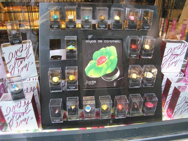 続きまして♪市場の近くにある、お菓子屋さんに行きました。”ESCRIBA”というお菓子屋さんで、チョコレートやケーキなどを売っていました。でもメインは、飴で作られた指輪☆です。どきん☆chanが前から来たかったお店だったようで、その飴の指輪を買っていました。食べるのかなと思い聞くと、飾ると言っていました。お店でも飾られていましたが、とてもキレイで、確かに食べるのがもったいない感じでした。さらに、高価なので、それを考えても、食べるより飾っておく方がいいかな^^