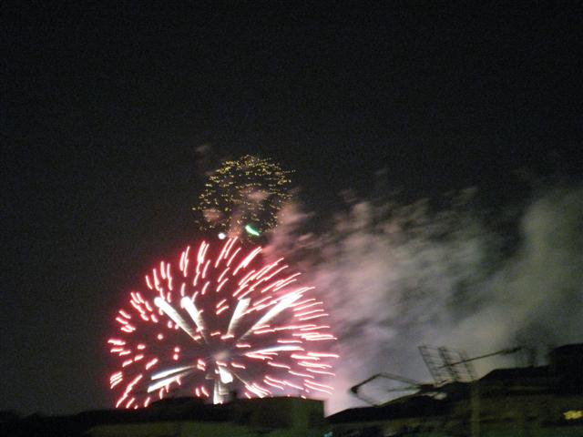 急いで撮ったのでうまく写っていませんが、家からとても近い場所で花火が上がっていました。