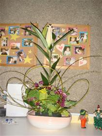 前から私の生け方は、(大きく生けるのが好きだったので)ダイナミックでいいねぇと言われていましたが、今日もそのダイナミックな感じが少し出てるかな。ちょっとスペインの風を吹かせてみました、と先生に見せると、今日の生け方は独創的だねと言われました。前向きな性格なので、先生のどの言葉も、褒め言葉として受け止めています。