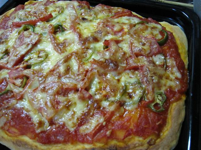 突然思い立ったので、上に載せる具はあまりありませんでしたが、トマトやピーマンなど、あるものだけで作ってみました。