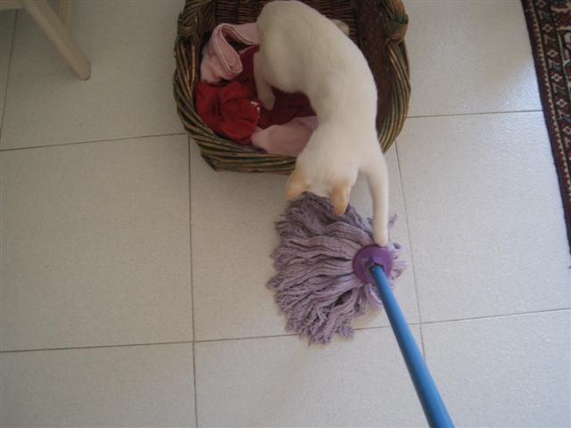 私は、猫の後ろ頭を見るのが好きなので、意味なくキティのベッドの近くを念入りにモップがけし、わざとちょっかいを出させ、上からその後ろ頭を見て、ニヤニヤしてます。かわいい~☆いつかまたそのかわいい後ろ頭ショットを撮ってやろうと企んでいますが、厳しそう;こんな感じで獲物に夢中になってる時はいいんですが、穏やかな時は、カメラを向けると間違いなくこっちを向くので、難しいー;でももし成功したら載せますね。