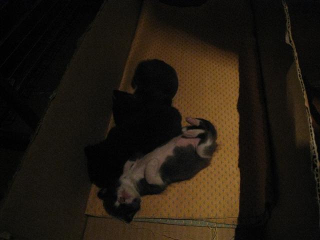 そして今日、我がテテリアへ、一匹ずつ子猫をくわえて、その看板猫がやってきました。全部で3匹。テテリアやここにいる人たちを信頼してくれているようで、嬉しかったです。早速テテリアの隅にダンボールと布を敷いて、そこに子猫3匹を入れると、看板猫は母乳を与え始めました。そんな小さい猫を見たことがなかったので(犬は飼っていたので見たことはあったのですが)、ずーーーっと飽きずに見てました^^かわいかったぁ。カメラで驚かせたくなかったのですが、あまりにもかわいかったので、一枚だけパチリと撮ってみました。かわいいでしょ☆