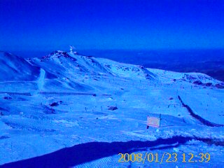 雪が最近ずっと降ってなくて、いい天気が続いたので(海で泳ぐ人もニュースに出ていたくらいで;)、また、標高の高い所にスキー場があるので(富士山のてっぺん辺りにある感じ)、雪のコンディションとしてはどうなの?って感じでしたが、昼間は気温が高かったので、春の雪、という感じで、それほど悪くないコンディションで滑れました。でも、昼間の暑さに雪が溶けて、朝晩の気温はかなり低くなる為、コース以外の部分は、カチコチに凍ってました。怖い怖い;